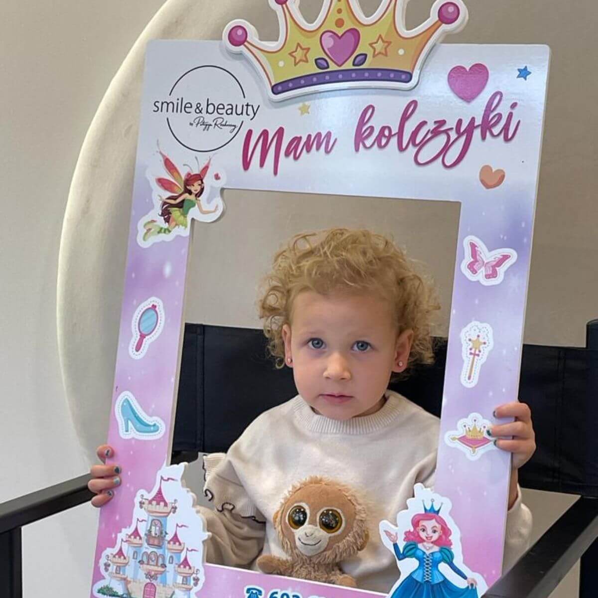 Sam zabieg przekłuwania trwa zaledwie kilka sekund, a cała wizyta zajmie około 30 minut. W ramach zabiegu otrzymasz wybrane kolczyki, specjalny płyn do pielęgnacji oraz dla małych księżniczek książeczkę „Moje pierwsze kolczyki”, która zawiera gry dla dzieci i dyplom przekłucia uszu. Pierwsze kolczyki to ważne wydarzenie w życiu, które pamięta się cały czas – my to rozumiemy, dlatego Tworzymy wokół tego małego święta niezapomniany klimat.